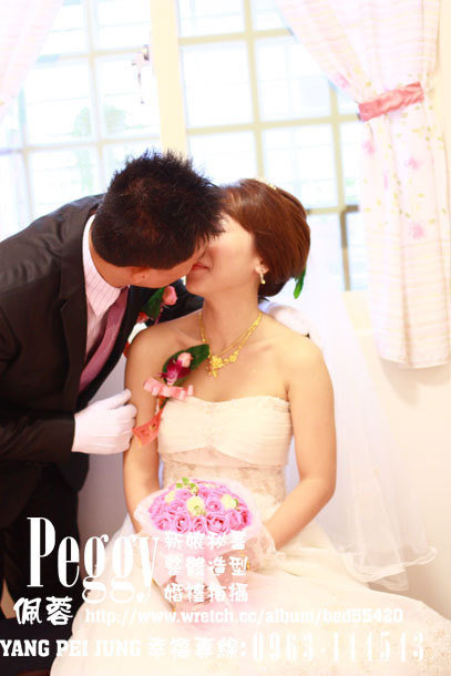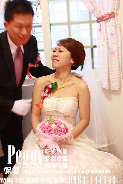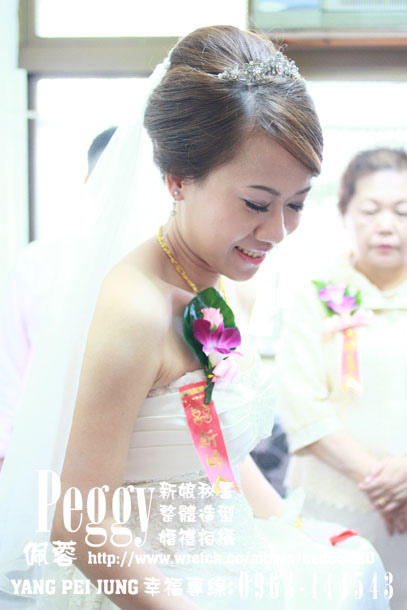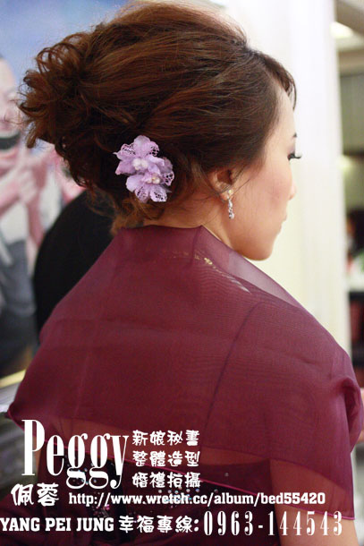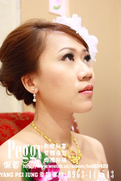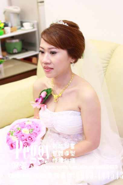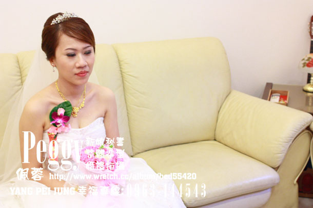 沒多久大約佩珊已經到家中(佩珊是先到婚紗店化好單妝)我等等要幫佩珊換一造型
